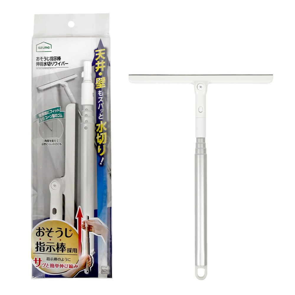 【送料無料】【スペア2個付】グングン吸水激絞りワイパー伸縮柄 ホワイト