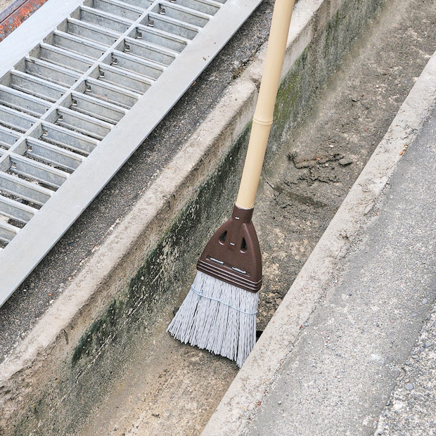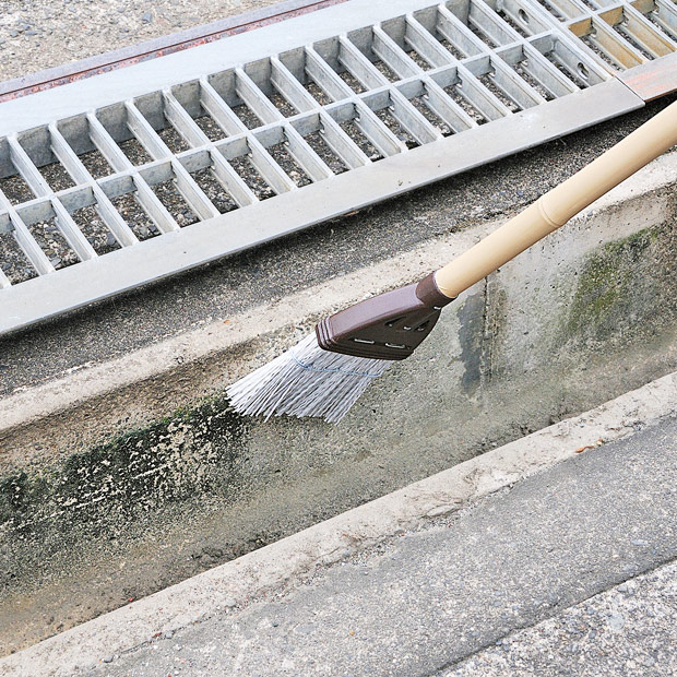 溝のゴミ一掃 ! 柄が長くて掃きやすい
