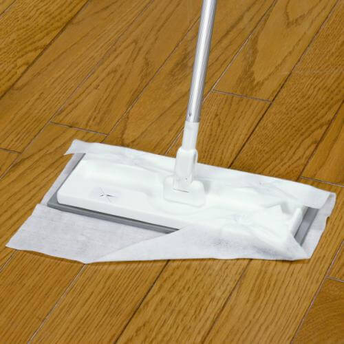 ・お手持ちのフローリングワイパーの取り付け方法に従って使用してください。 ・床面を軽く滑らせるようにしてお使いください。