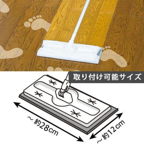 ヘッドサイズ約28×12cm以内のフローリングワイパーに取り付けできます。