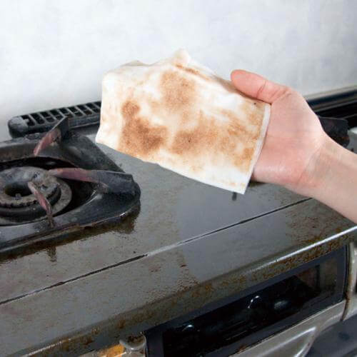 ダスターとして、家具や卓上の手アカ・黒ズミ、キッチンまわり・レンジの油汚れ(タンパク質汚れ)に効果的です。