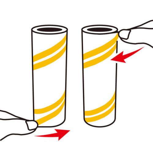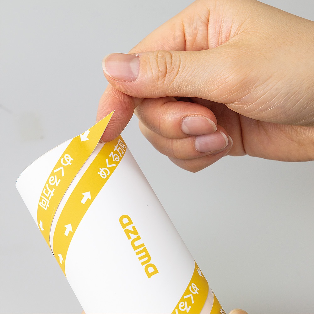 粘着テープはうずまきカットのどちらからでもスムーズにめくれます。