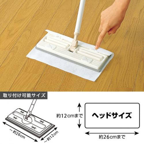 「極わめてワイパー」以外のフローリングワイパー(ヘッドサイズ約26×12cm以内)にも取り付け可能なワックス塗布用の使い捨てシート。 モップをかける要領で簡単にワックスがけができます。使用後のシートは捨てるだけ。お手入れもラクです。