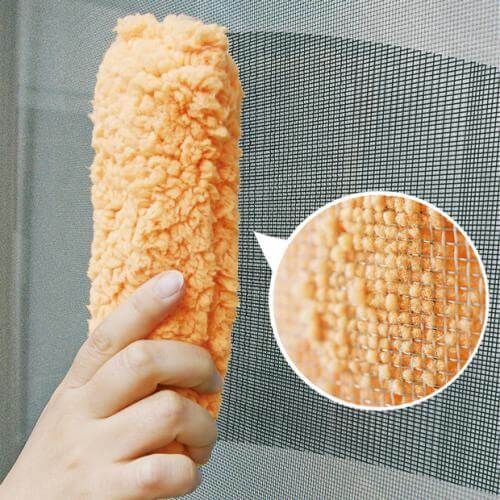 洗剤いらずのマイクロファイバー製。繊維1本1本が多角形構造になっているため、洗剤を使わずに汚れをかき取ることができます。油汚れの気になる、キッチンのベトベトした網戸にも使用できます。