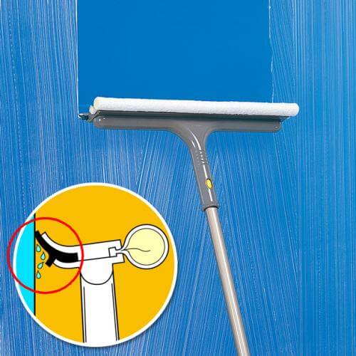 水含みが良いスポンジと汚れを洗い落とす不織布です。手元に水が伝わりにくい形状で、水切りゴムがムラなく水滴を拭き取り美しい仕上がりです。
