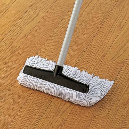 ・モップ糸を水に浸し、モップ絞り器または手などで絞り、床の表面を拭いてください。