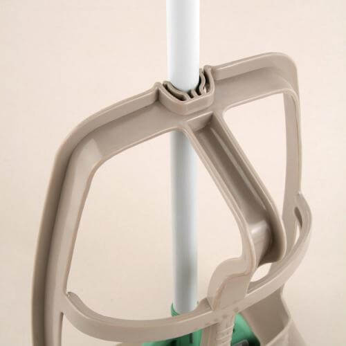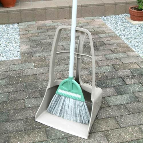 カチッとはめるだけで、ほうきがチリトリにセットできるので、持ち出しや収納に便利です。
