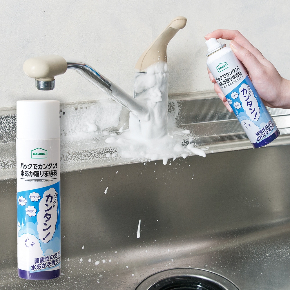クエン酸配合の泡でパックすることにより、カルシウムなどの水アカ汚れを溶かします。