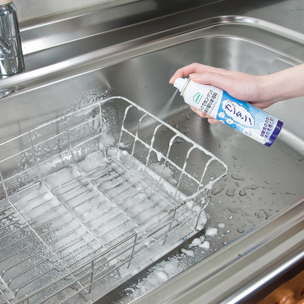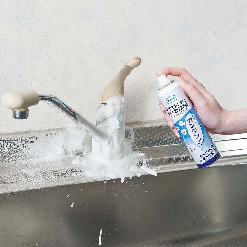 スプレーで出てくる泡が、水アカ汚れを落とします。