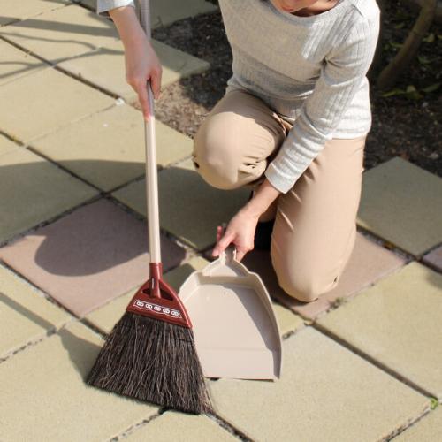 砂ボコリも残さず掃ける 細くしなやかな穂の ほうきとチリトリのセット