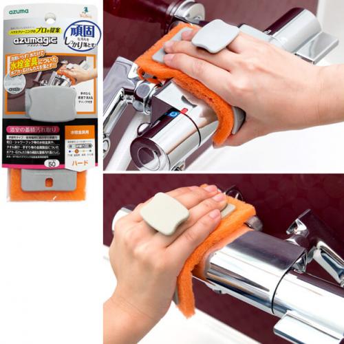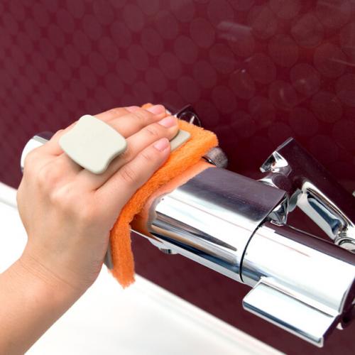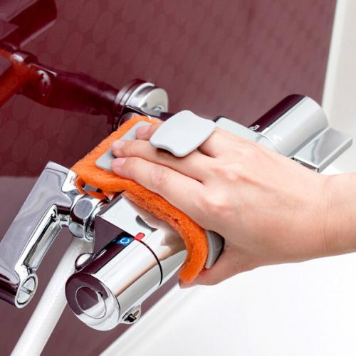 蛇口、シャワーフック、タオル掛け、手すりなどの水栓金具についた水アカや石けんカスなどの汚れを落とします。