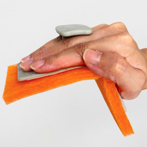 研磨布の取り付けは、面ファスナー式で簡単です。グリップの裏側と研磨布が貼り付きます。