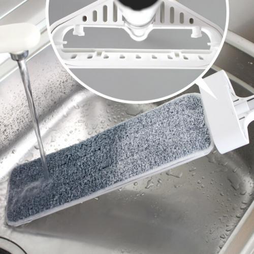 ・モップは水または中性洗剤で洗ってください。 モップを洗う際は、モップに流水をあてた状態で、グリップを押し引きし、絞り動作を繰り返すことで洗うことができます。 汚れがひどい場合はモップをヘッドから取り外し、手でもみ洗いしてください。