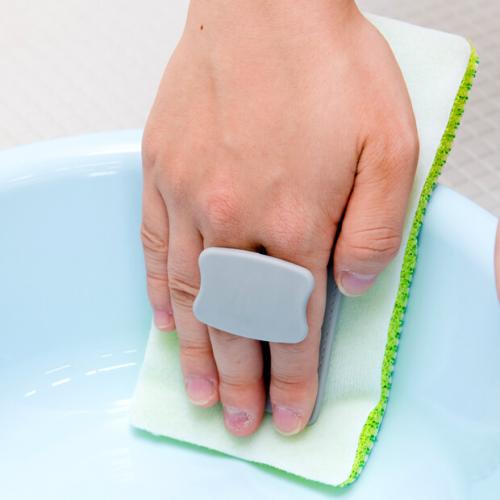 清掃面に対し、手のひらで均一に力が入れられるようなサイズに設計しました。薄めのスポンジですが、グリップを指にかけて使用するため、お掃除していてもスポンジがズレたり形が崩れてくることがありません。