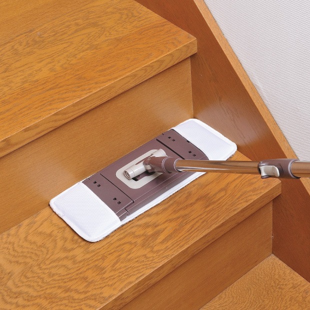 階段や部屋の角などをしっかり拭き掃除!フローリングワイパーと似た形状なので使いやすいことが魅力です。