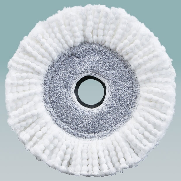 丸型はホコリを絡め取るように周辺に長い繊維を、中央部には力を入れて拭けるように短い繊維を配置しました。