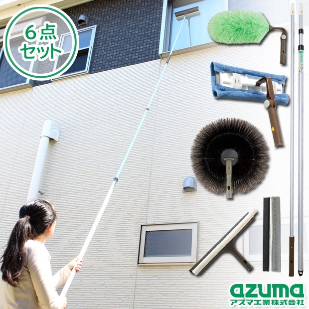 三段伸縮柄と1本柄のセットです。1階分の高さには1本柄を、高い場所には伸縮柄、または伸縮柄に1本柄を取り付けて、自由に長さが調節できます。