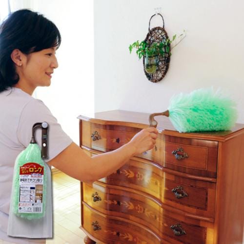 網状の繊維(開繊糸)が摩擦によって静電気を起こしてホコリをキャッチ。穂の角度が6段階に調節できるので、使いやすい角度でお掃除できます。