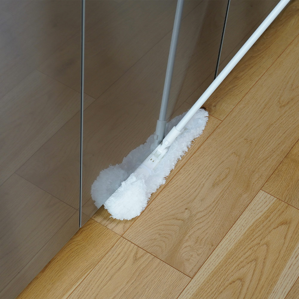 細長でスリムなモップ形状なので、せまいところのお掃除にも適しています。また、掃くように動かせば、拭きにくいテーブルまわりや階段も簡単にお掃除できます。