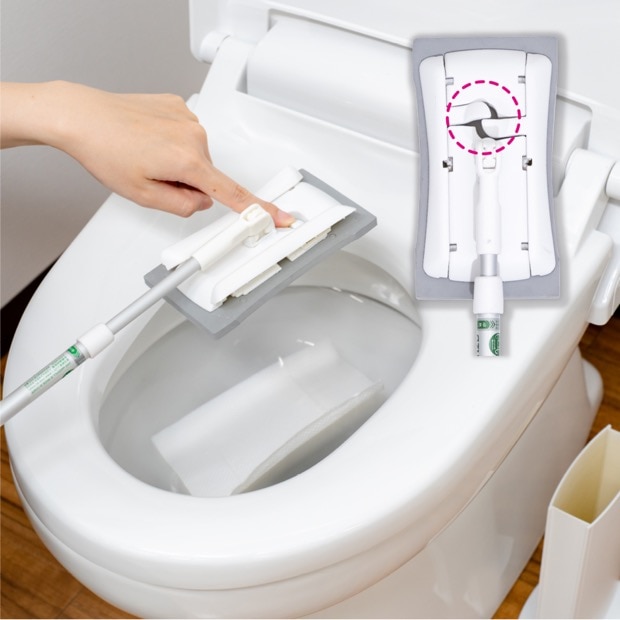 約16×13cm以上の市販のシートが取り付けできます。水に流せるシートであればそのままトイレに捨てることができます。 別売のトイレに流せる「SQ058トイレ用ウェットシート30P」もご使用いただけます。