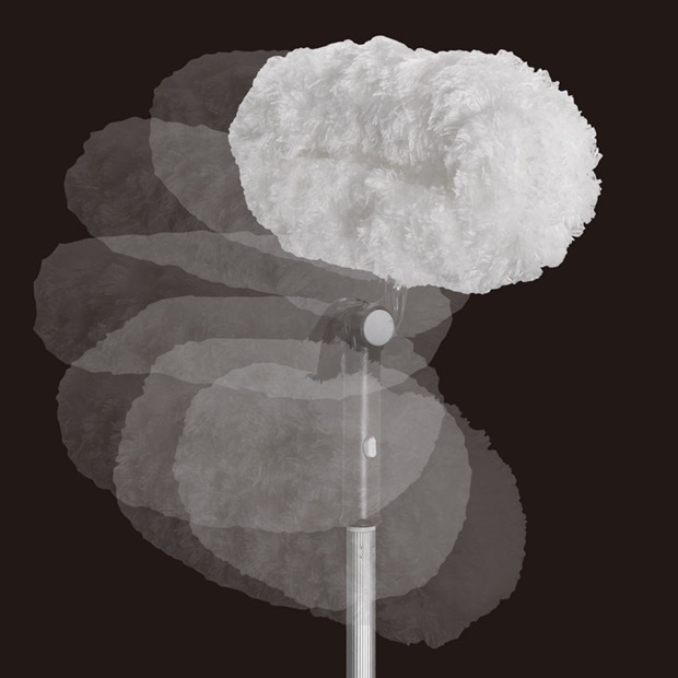 近年、吹き抜けや勾配天井などの住宅の増加に伴いシーリングファンのお掃除についてのご質問をいただくことが増えてきました。シーリングファンにつく汚れは羽にホコリが付着するため通常のハタキではホコリがなかなか取れません。そこで、羽根を包み込むリング形状を新たに設計し、モップには汚れをかき取り吸着できるマイクロファイバーを採用しました。静電気で汚れを吸着する「エレキャッチ自在」と比べると拭き取るようにお掃除でき、スペア交換できるようになりました。シーリングファン以外の高いところのお掃除にもぜひご利用ください。