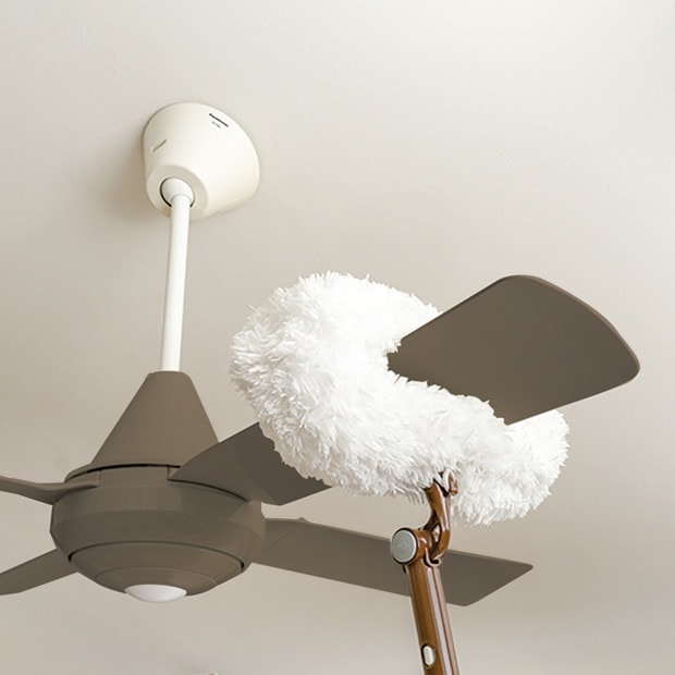モップはシーリングファンの羽根に通して使用できるリング状。羽根を逃さず両面同時にお掃除できます。
