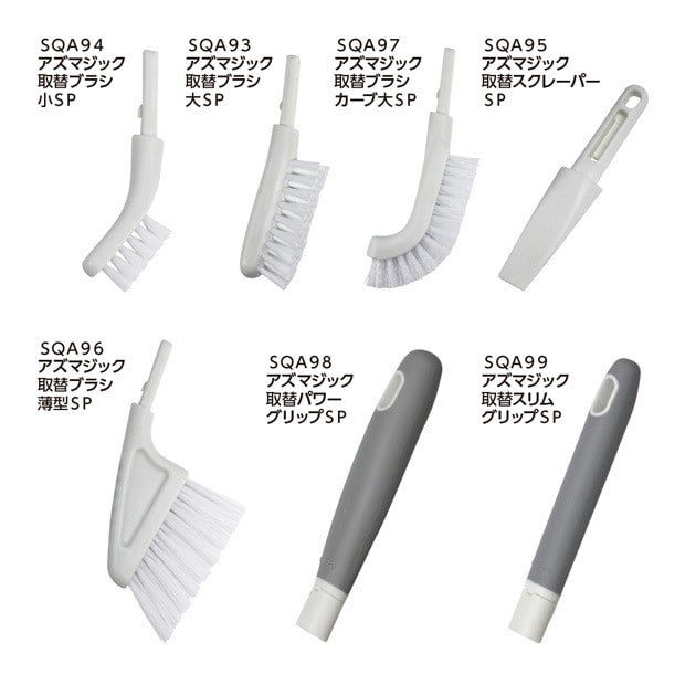 ブラシが劣化したら別売の「SQA97アズマジック取替ブラシカーブ大SP」(スペア番号A97)と交換できます。