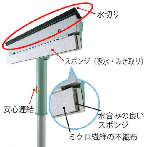 水切りゴムが拭き取り面にフィットし、ガラスの汚れをスッキリ水切りします。