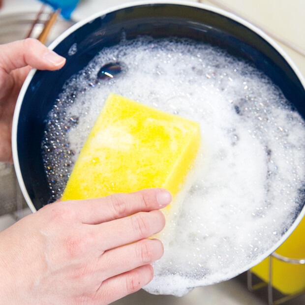 1. スポンジをぬるま湯(約30℃)に5分程度浸けてください。