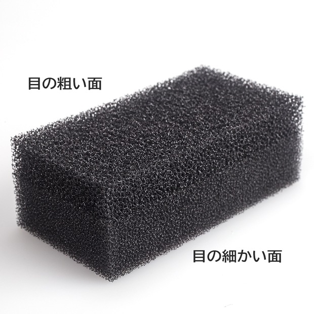このスポンジは色々な汚れに対応できるよう、目の粗いスポンジと目の細かいスポンジの「2層構造」になっています。