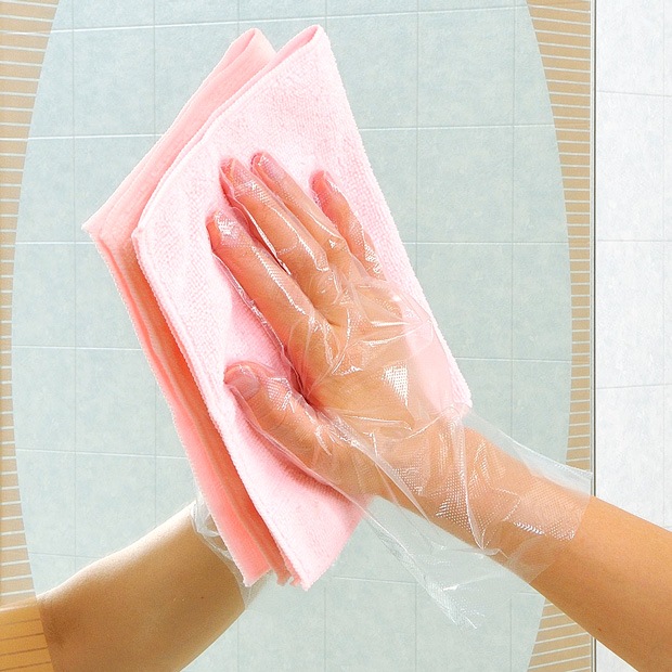 揮発性が高いため、ガラス面に洗剤残りがなく、拭き跡が残りにくくなっています。また、同じ理由で洗剤と汚れを拭き取ったクロスの乾きが速いのも特長の一つ。一枚のクロスでたくさんのガラスを拭くことができます。