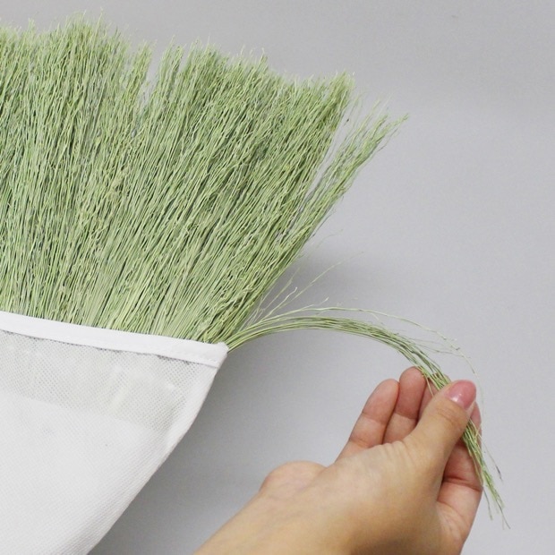 ほうき草の茎の部分を切り落とし、穂先だけを束ねているので、手編みほうきに比べ軽く、手首への負担が軽減されています。