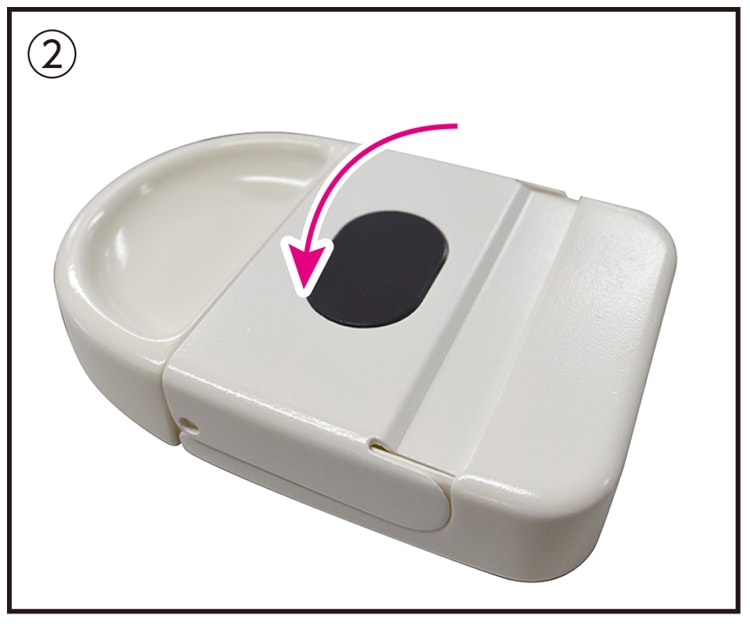 ②ちりとりのフタを倒し、ロックしてください。