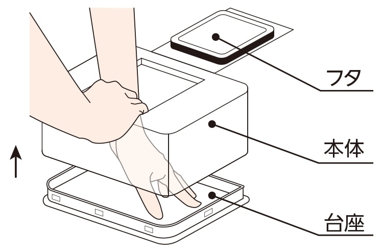 ※図のように台座を押さえながら本体を引き上げて外してください。