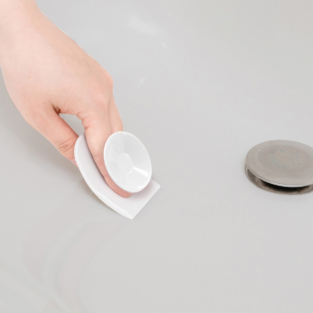 [2] 上図のように吸盤を指で挟み、ブラシ面で洗面台を軽くこすり洗いします。