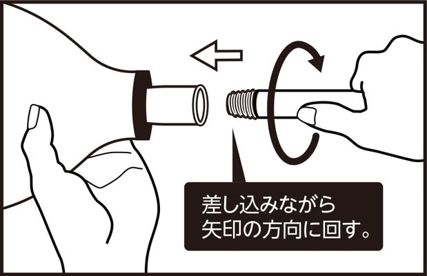 ・ヘッドに柄を差し込みながら矢印の方向に回して固定します。