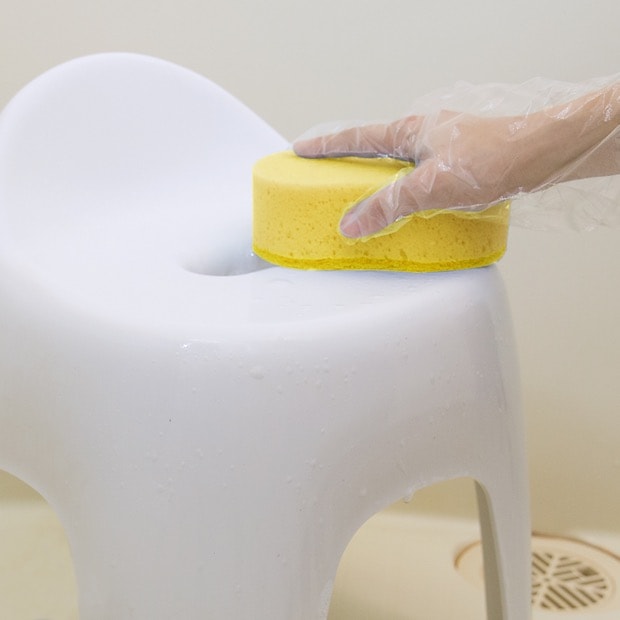 付属のスポンジまたはお手持ちのクロスに薬剤をとり、こすり洗いするだけ。頑固な汚れには軽く薬剤を塗り広げ、1~2分置いた後にこすり洗いすると効果的です。