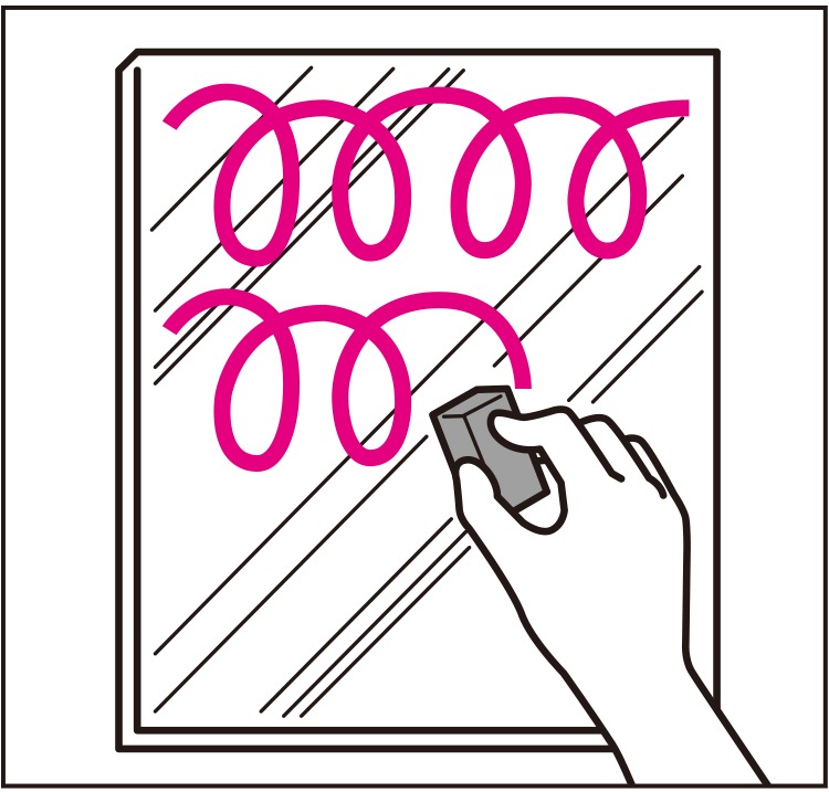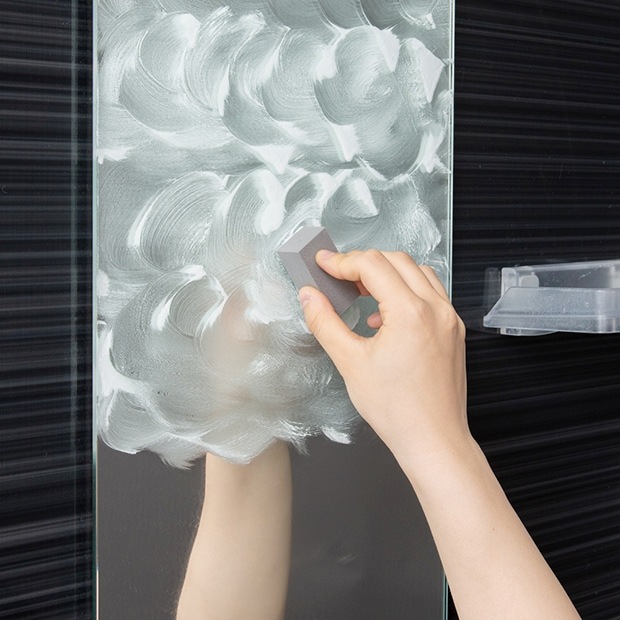 専用に配合した酸性成分の力で頑固な汚れをじわーっと溶かし、大小2種類の研磨材が、鏡表面についた微細な凸凹に入り込み、汚れをかきだします。力を入れてゴシゴシする必要はありません。