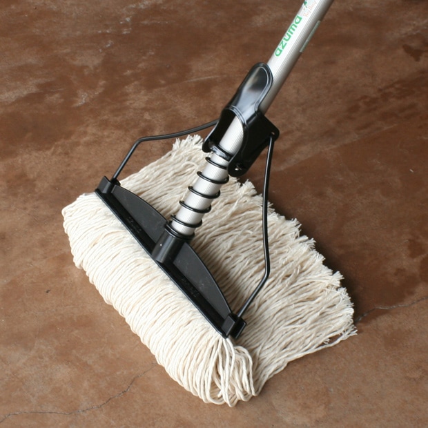 ・モップ糸を水に浸し、モップ絞り器または手などで絞り、床の表面を拭いてください。
