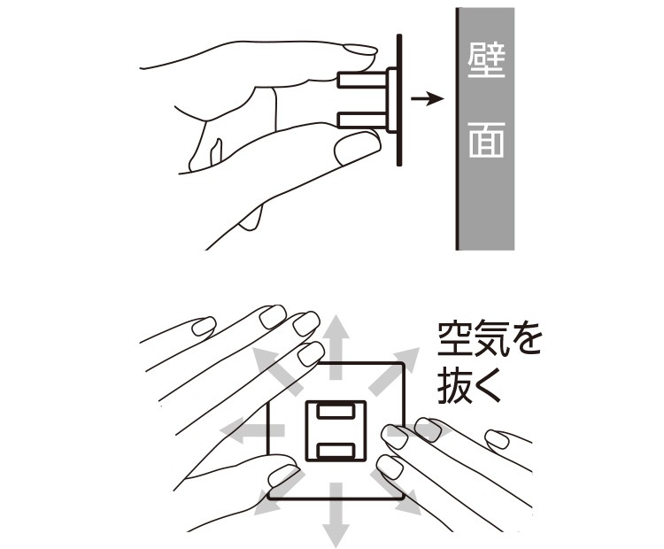※壁面の状況によってはすぐにはがれ落ちる場合もありますので、確実に吸着しているかお確かめの上、ご使用ください。