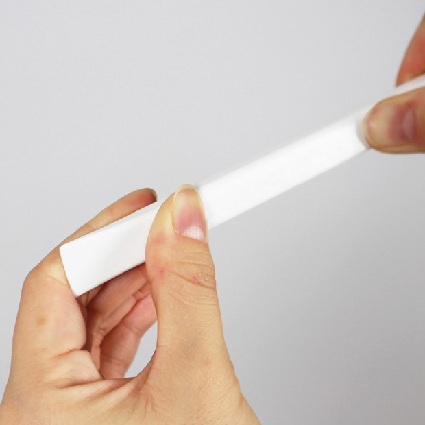 ②吸着面に触らないように、半透明の保護フィルムだけをはがします。