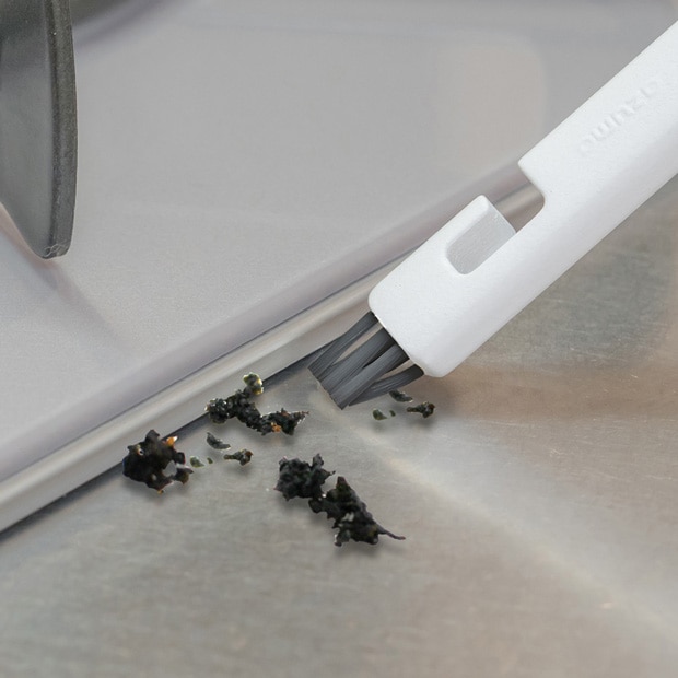 スミの汚れをかき出すミニブラシ付きです。