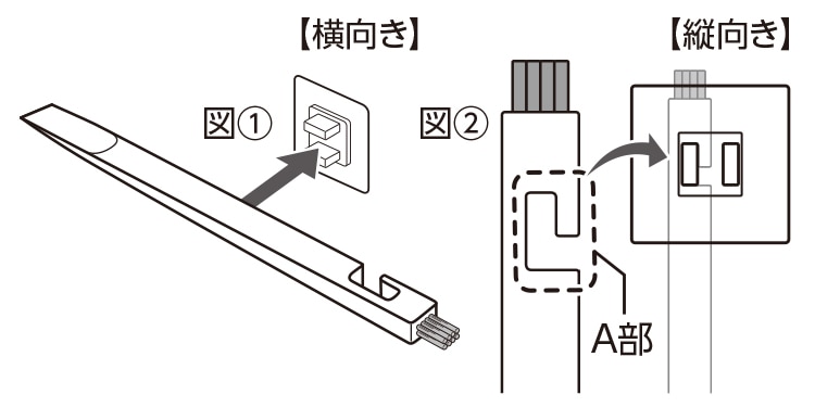 またはA部 を引っ掛けて収納してください(図②)。