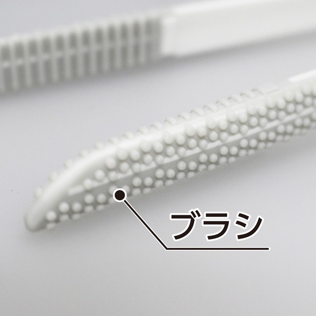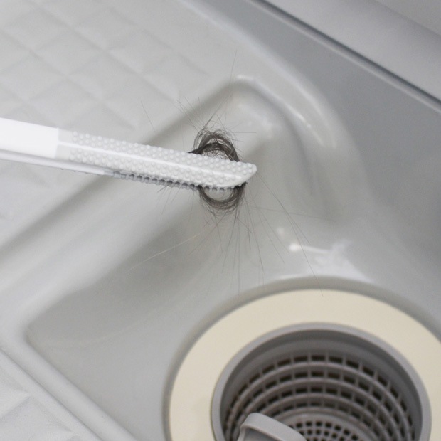 トング外側の細かいゴム製のブラシが、排水口の汚れをしっかりかき取ります。またブラシについた汚れが落としやすく衛生的です。