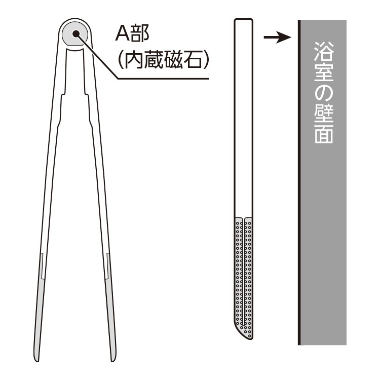 本体に磁石が内蔵されています。浴室の壁に磁石でピタッと貼り付くので、収納場所を取りません。