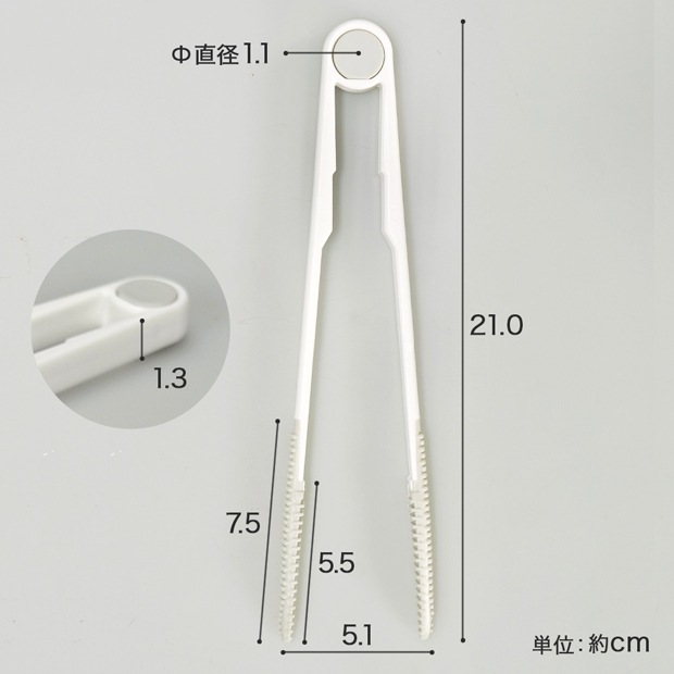 ・使用後は水でよく洗って乾燥させ、トング先端のゴムにクセがつかないように保管してください。