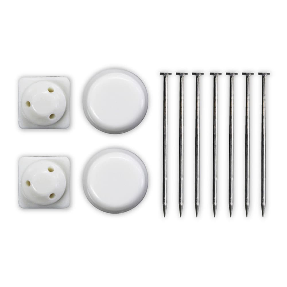 ケースを壁面にセットするための取り付けパーツ、キャップ、ピンがそれぞれ付属しています。