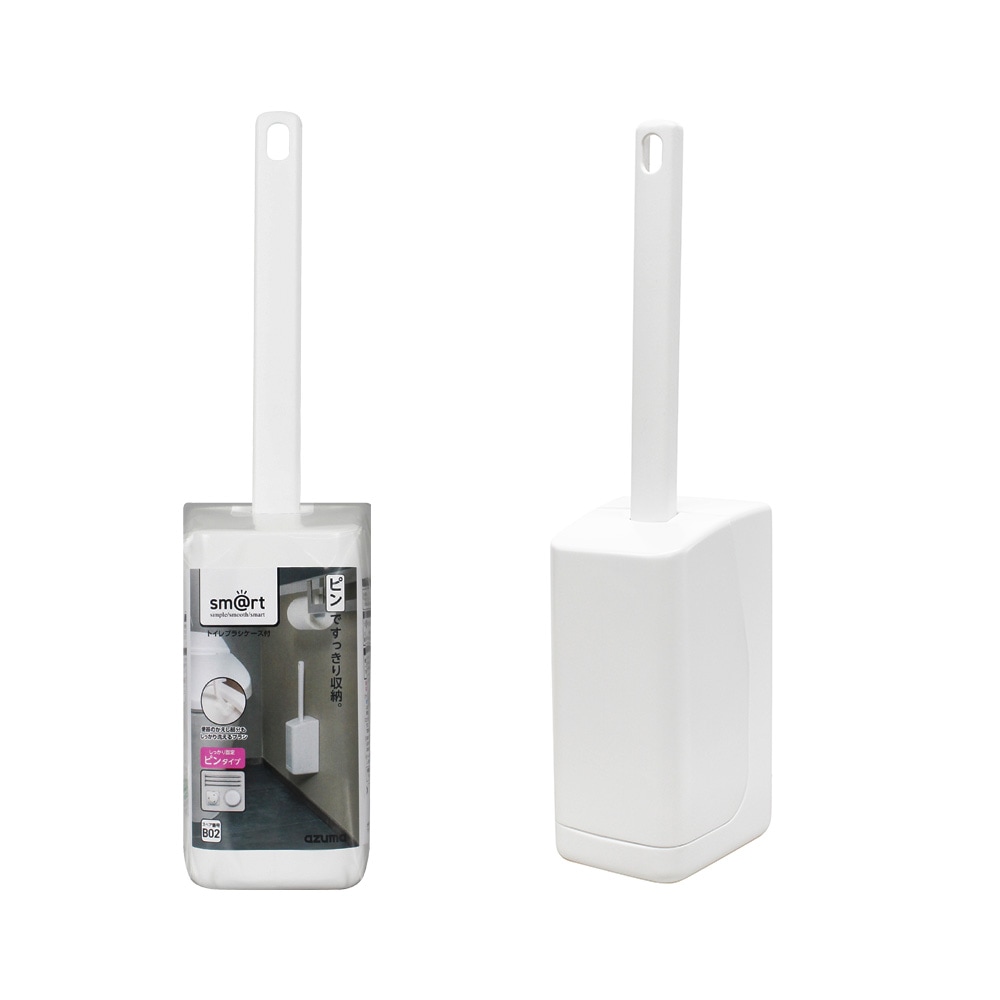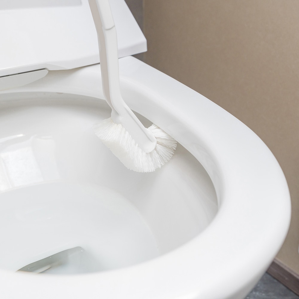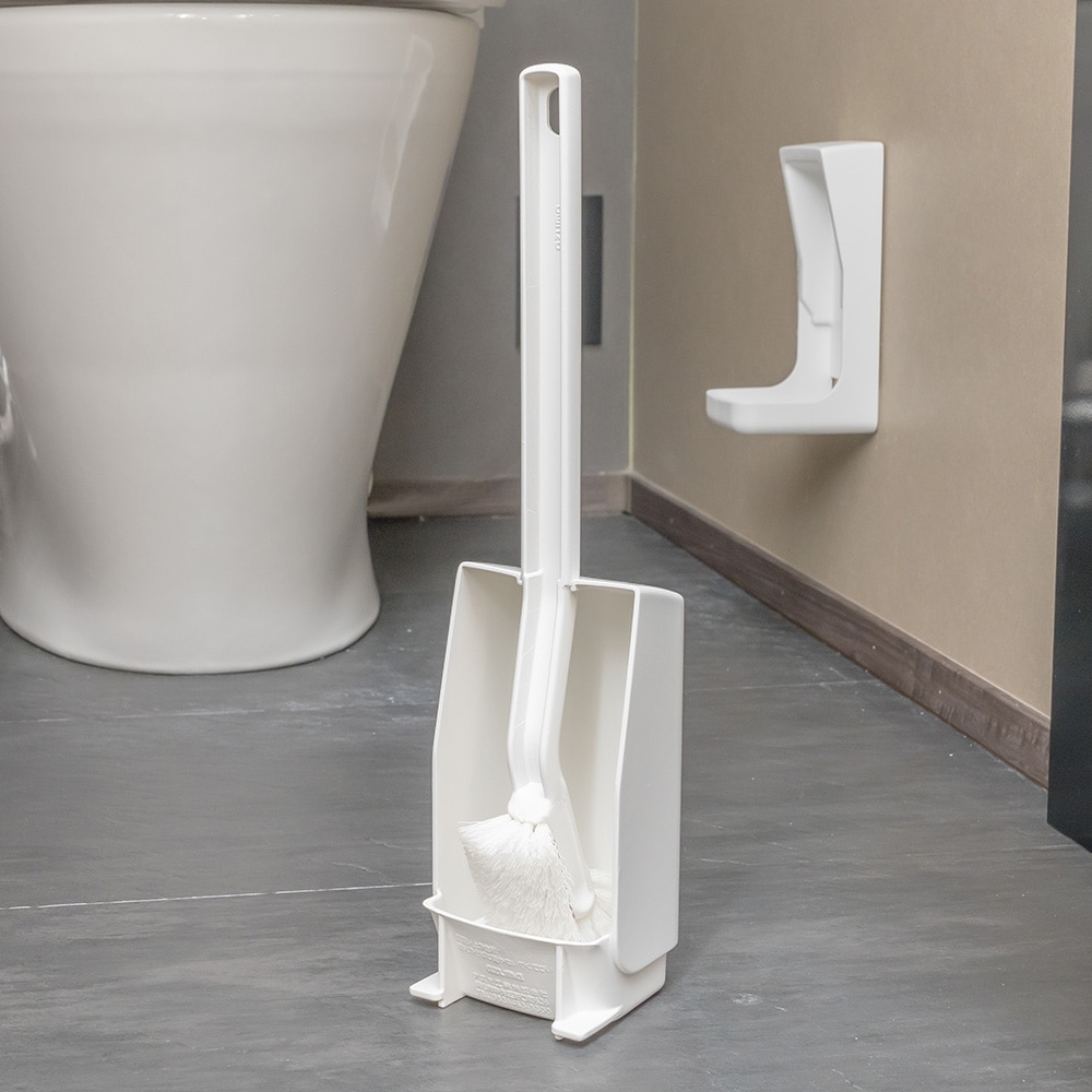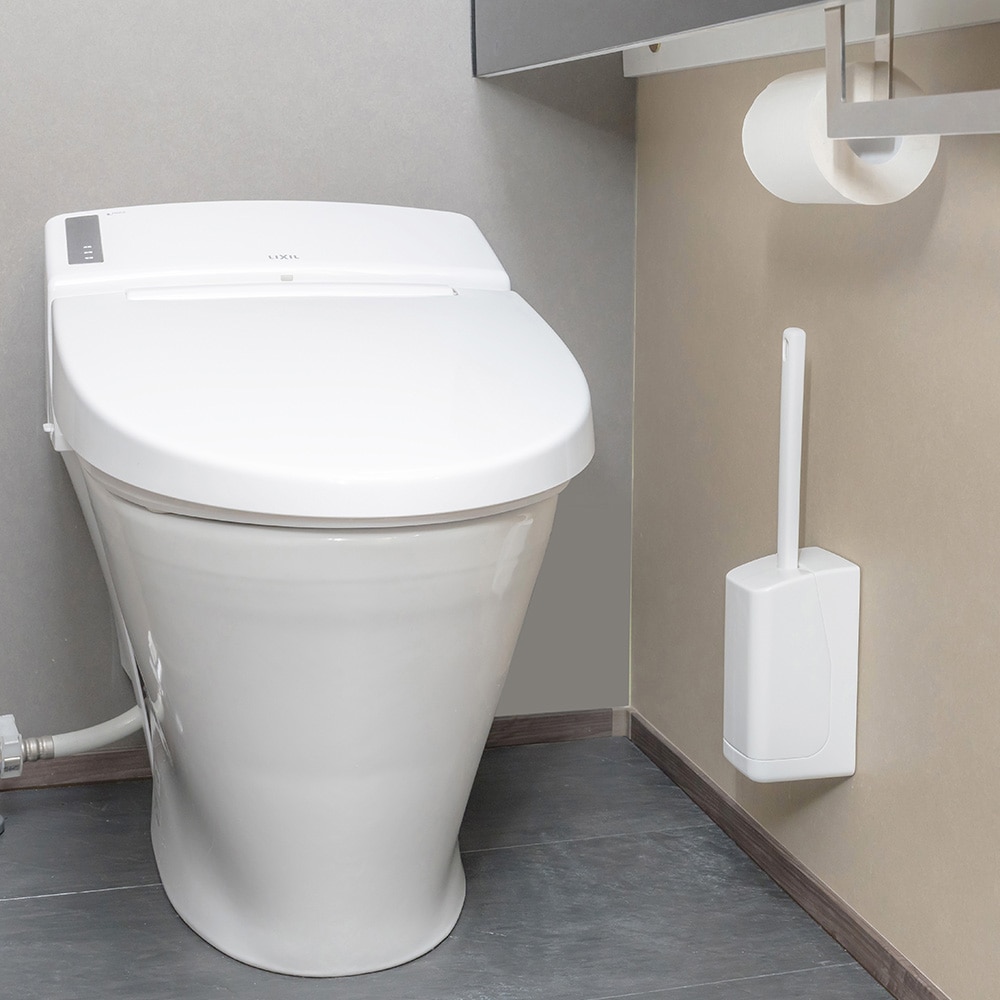 トイレの壁に浮かせて収納できるケース付トイレブラシ。