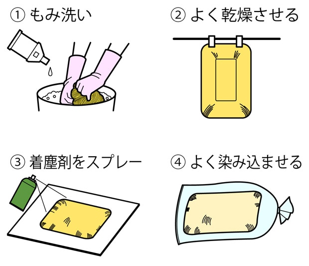3. 新聞紙などを敷いた上で市販の着塵剤をスプレーしてください。