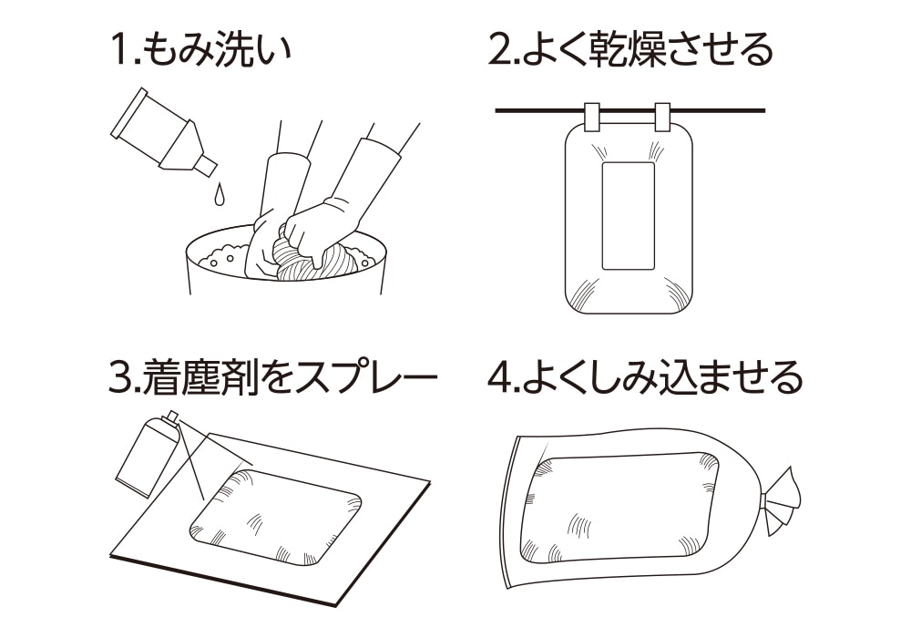 3. 新聞紙などを敷いた上で市販の着塵剤をスプレーしてください。